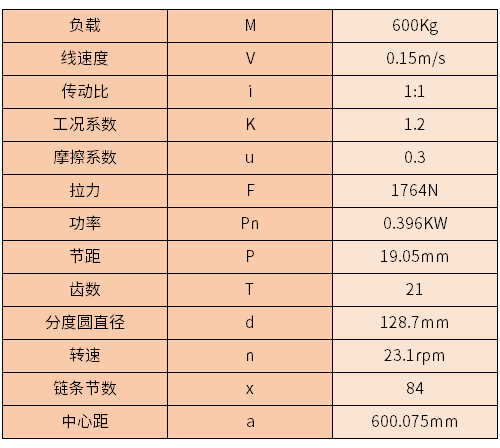已知鏈條要用以驅(qū)動水平線運輸,其負載約為600kg,驅(qū)動水平線的運輸速度為0.15m/s,鏈輪的傳動比為1:1,那么該如何選用合適的鏈輪和鏈條呢?