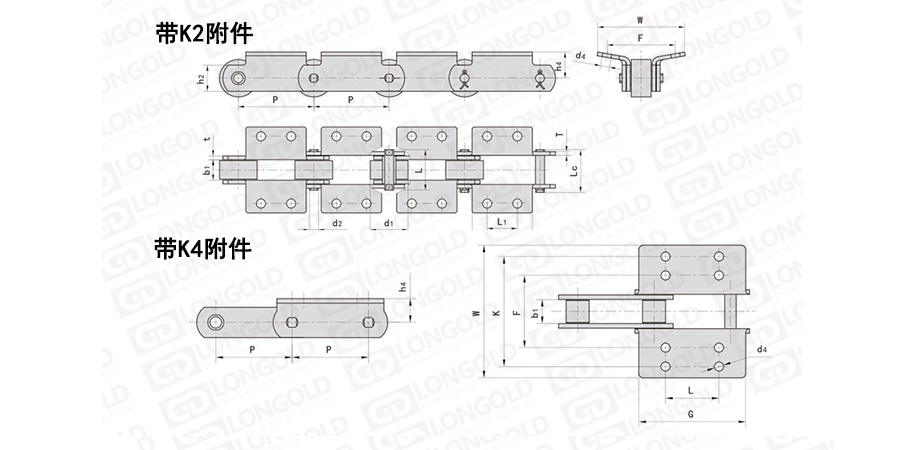 鏈條節(jié)距為非常用規(guī)格,裝配類似K2/K4的附件,用于物料的輸送。