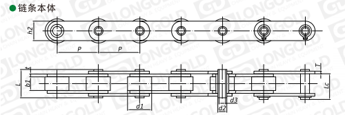 鏈條不論是在直線上或咬合鏈輪時(shí),附件的中心距離都不變。 空心銷(xiāo)軸可以安裝棒或其他附件使用。