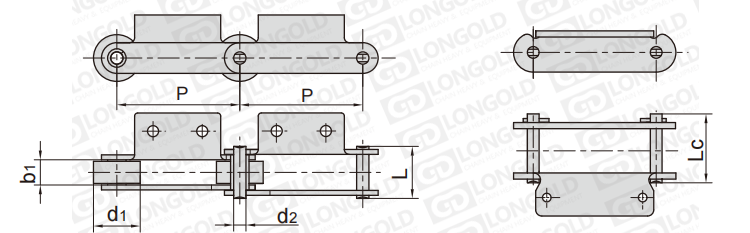 鏈條節(jié)距為非標(biāo)規(guī)格,需要安裝特定的附件,以用于物料的輸送。