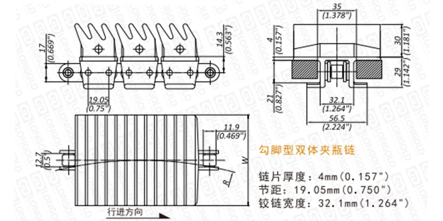 上圖為L(zhǎng)DGW1873T系列雙體鏈的結(jié)構(gòu)圖,圖紙已標(biāo)明本體尺寸。