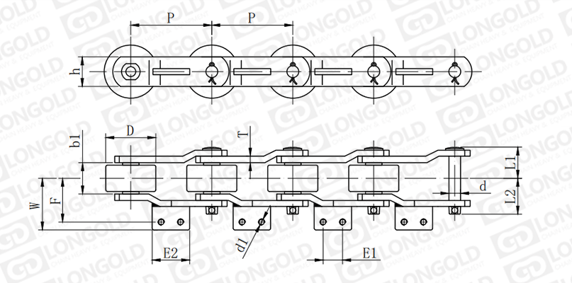 附件可配裝在每一個(gè)鏈節(jié)以上的鏈節(jié)間隔,如每偶數(shù)鏈節(jié)安裝,為了容易進(jìn)行保養(yǎng),安裝在外鏈節(jié)。
