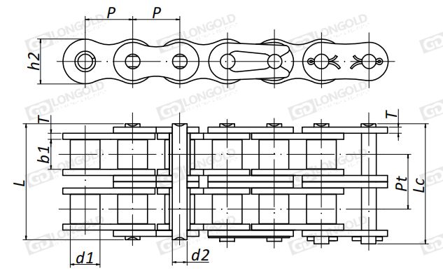 多列鏈條由于尺寸不同,所以不能使用標(biāo)準(zhǔn)滾子鏈輪。(如有特殊需要,請(qǐng)聯(lián)系隆德鏈條的技術(shù)人員)