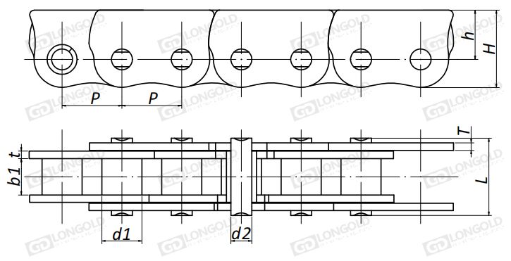 產(chǎn)品組成包括內(nèi)鏈板、外鏈板、套筒、滾子和銷(xiāo)軸。