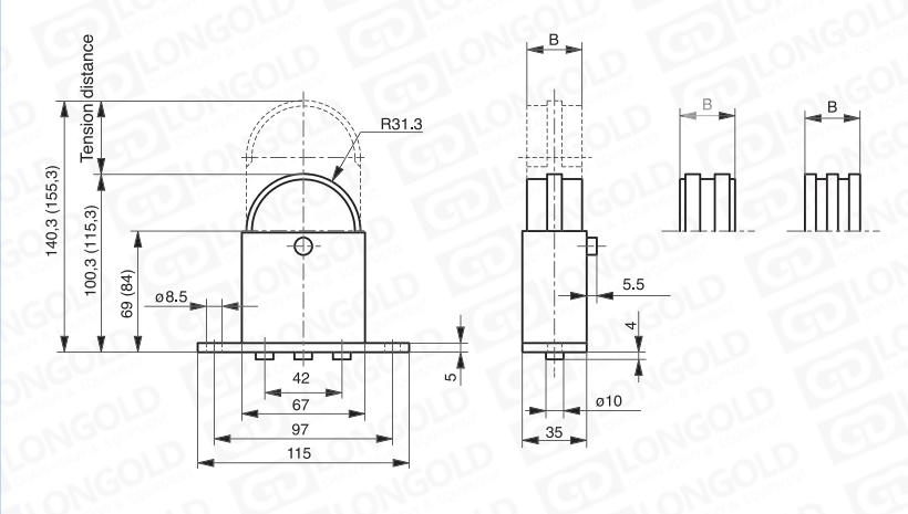 張緊力:3根彈簧,輕型,96-174N;重型,180-396N。