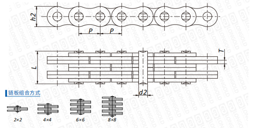 上圖為標(biāo)準(zhǔn)LL系列板式鏈的結(jié)構(gòu)圖。