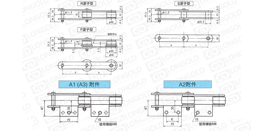 (2)滾子形式:R=大滾子  S=小滾子  F=F滾子