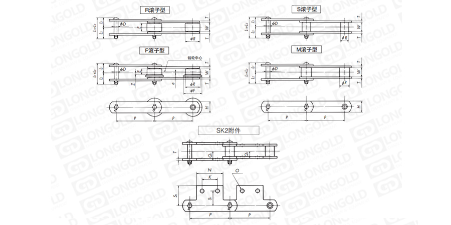 (2)滾子形式:R=大滾子  S=小滾子  F=F滾子 M=M滾子