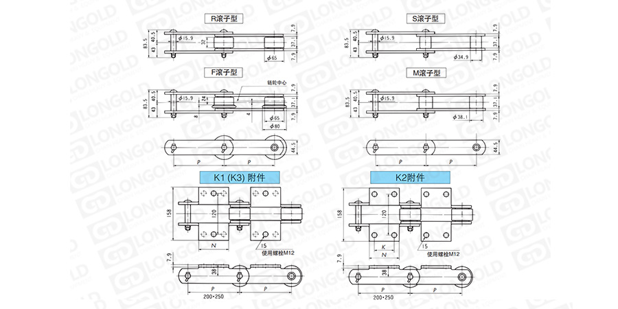 (2)滾子形式:R=大滾子  S=小滾子  F=F滾子 M=M滾子