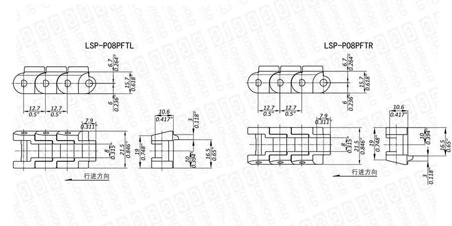 上圖為LSP-PO8PFT系列直行鏈的結(jié)構(gòu)圖,圖紙已標(biāo)明本體尺寸。
