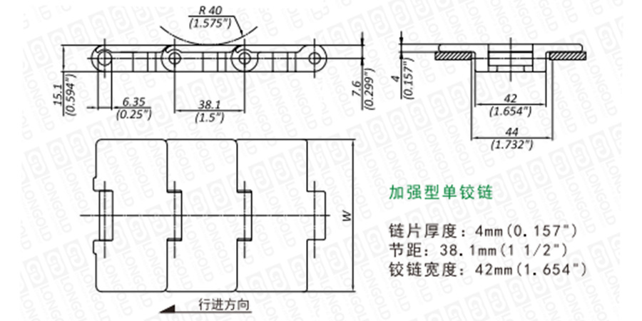 上圖為LD828系列直行鏈的結(jié)構(gòu)圖,圖紙已標明本體尺寸。