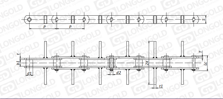 附件是為了將夾具安裝在鏈條上的零部件。可根據(jù)客戶要求設(shè)定安裝間隔。