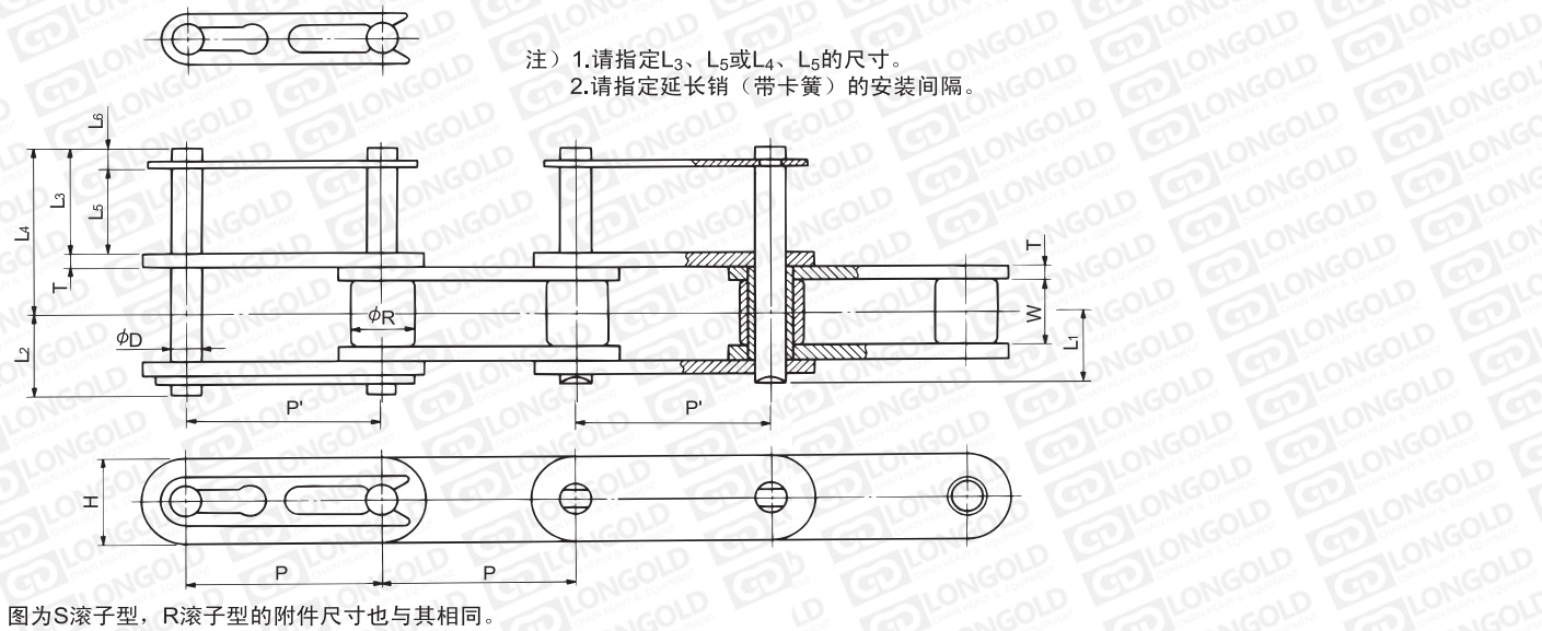 (2)滾子形式:R=大滾子  S=小滾子