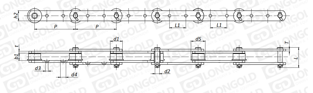 附件可配裝在每一個(gè)鏈節(jié)以上的鏈節(jié)間隔,如每偶數(shù)鏈節(jié)安裝,為了容易進(jìn)行保養(yǎng),安裝在外鏈節(jié)。