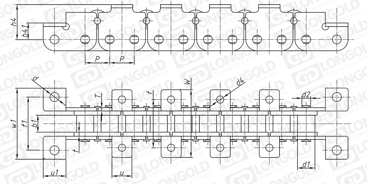 附件可配裝在每一個(gè)鏈節(jié)以上的鏈節(jié)間隔,如每偶數(shù)鏈節(jié)安裝,為了容易進(jìn)行保養(yǎng),安裝在外鏈節(jié)。