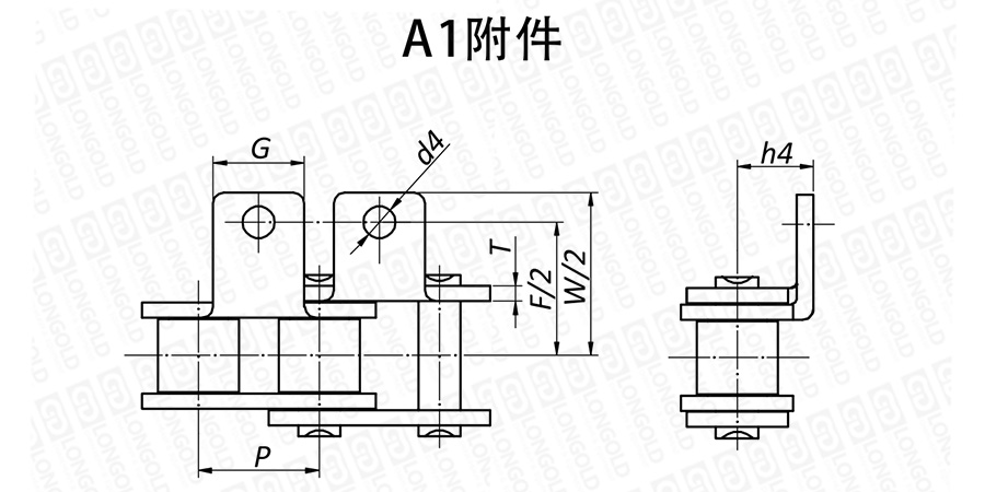 上圖為不銹鋼滾子鏈帶A1附件的結(jié)構(gòu)圖。