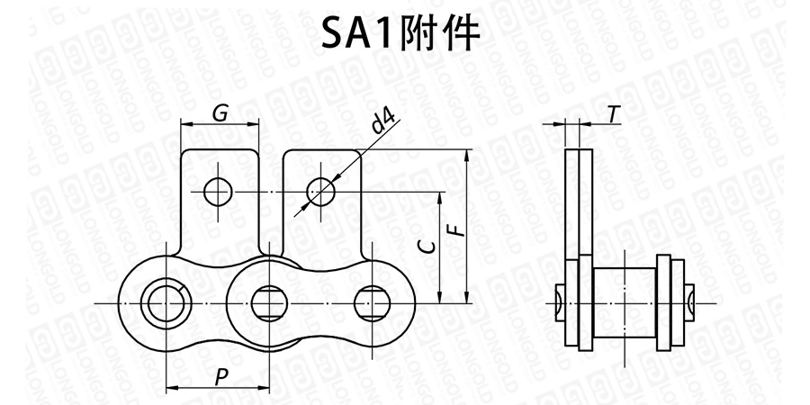 上圖為不銹鋼滾子鏈帶SA1附件的結(jié)構(gòu)圖。