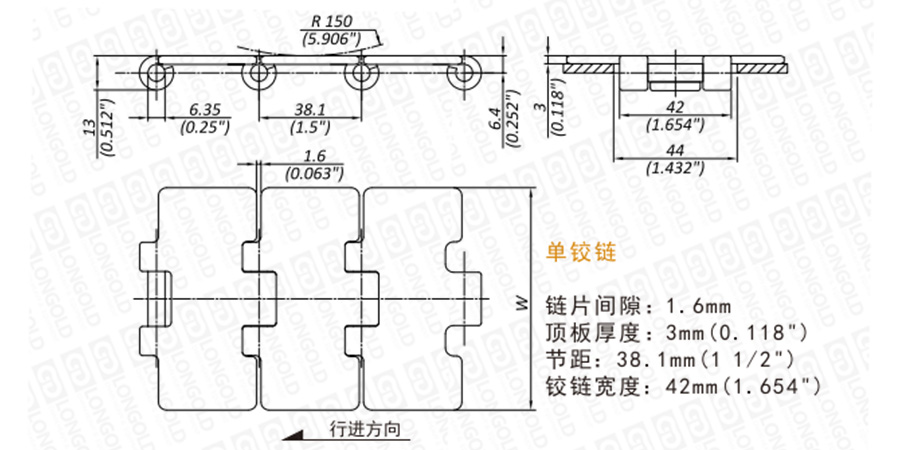 采用圓弧倒角,頂板上表面邊緣圓滑。傳送順暢、平滑,橫向和縱向間隙減小,更有利于產品運作。