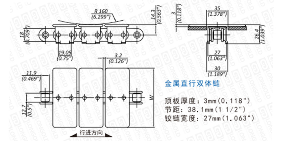 上圖為L(zhǎng)D1864系列直行鏈的結(jié)構(gòu)圖,圖紙已標(biāo)明本體尺寸。