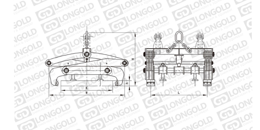 機械杠桿重力式夾鉗,采用杠桿的工作原理,依靠板(方)坯自重夾持板坯并緊鎖,開閉機構(gòu)為螺旋往復(fù)式,能自動實現(xiàn)夾鉗臂的開閉動作,可配置機械或聲光電指示裝置增加開閉動作可靠性。夾鉗不需要任何動力源,結(jié)構(gòu)簡單合理,動作靈活。可實現(xiàn)單塊、多塊板(方)坯的吊運。