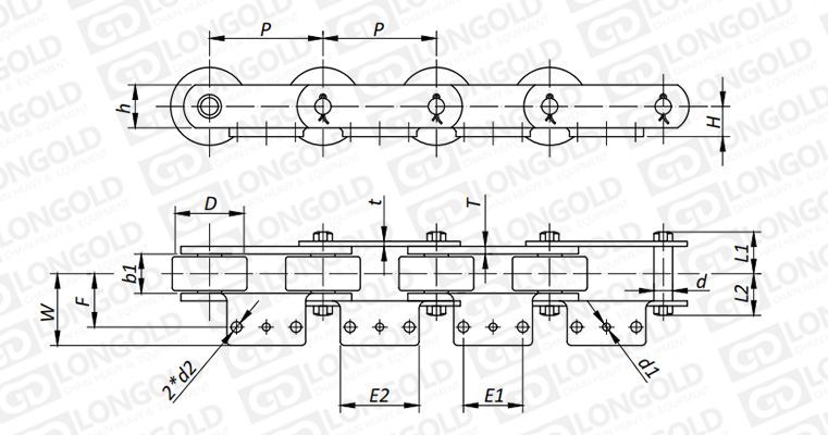 附件是為了將夾具安裝在鏈條上的零部件??筛鶕?jù)客戶要求設(shè)定安裝間隔。
