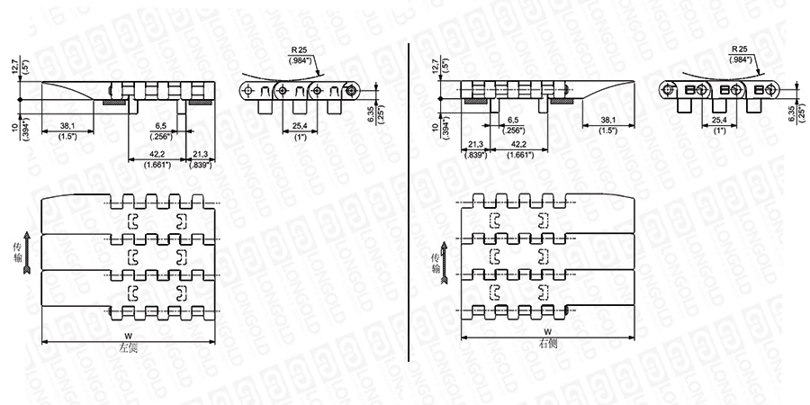 上圖為1"節(jié)距重載鏈板 USPG ATM系列的結(jié)構(gòu)圖,圖紙中已標明部分尺寸。