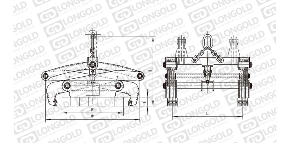 機械杠桿重力式夾鉗,采用杠桿的工作原理,依靠板(方)坯自重夾持板坯并緊鎖,開閉機構(gòu)為螺旋往復(fù)式,能自動實現(xiàn)夾鉗臂的開閉動作,可配置機械或聲光電指示裝置增加開閉動作可靠性。夾鉗不需要任何動力源,結(jié)構(gòu)簡單合理,動作靈活。可實現(xiàn)單塊、多塊板(方)坯的吊運。