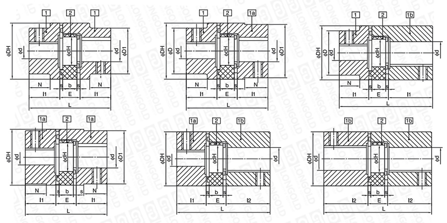 注:1.GE聯(lián)軸器廠標(biāo)產(chǎn)品出廠狀態(tài)為第一種本體型式工藝孔,膠墊硬度SHA92。