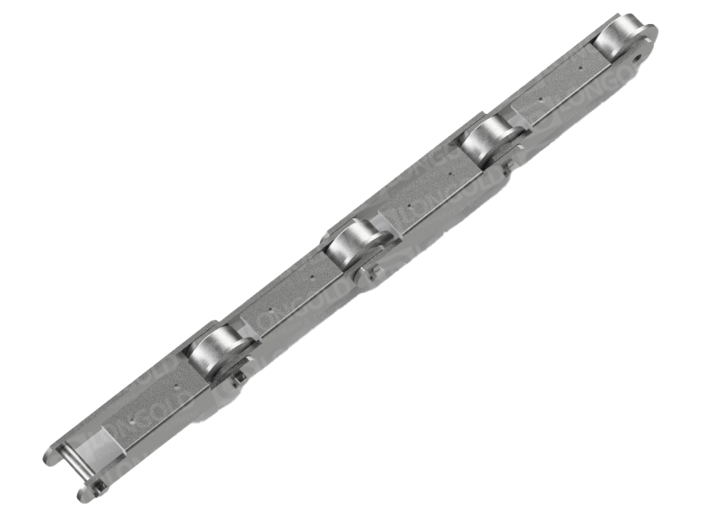 此種輸送鏈是由雙節(jié)距鏈條衍生而來的,鏈條節(jié)距為非常用規(guī)格,通過裝備特殊附件使鏈條滿足特定的工作需求。