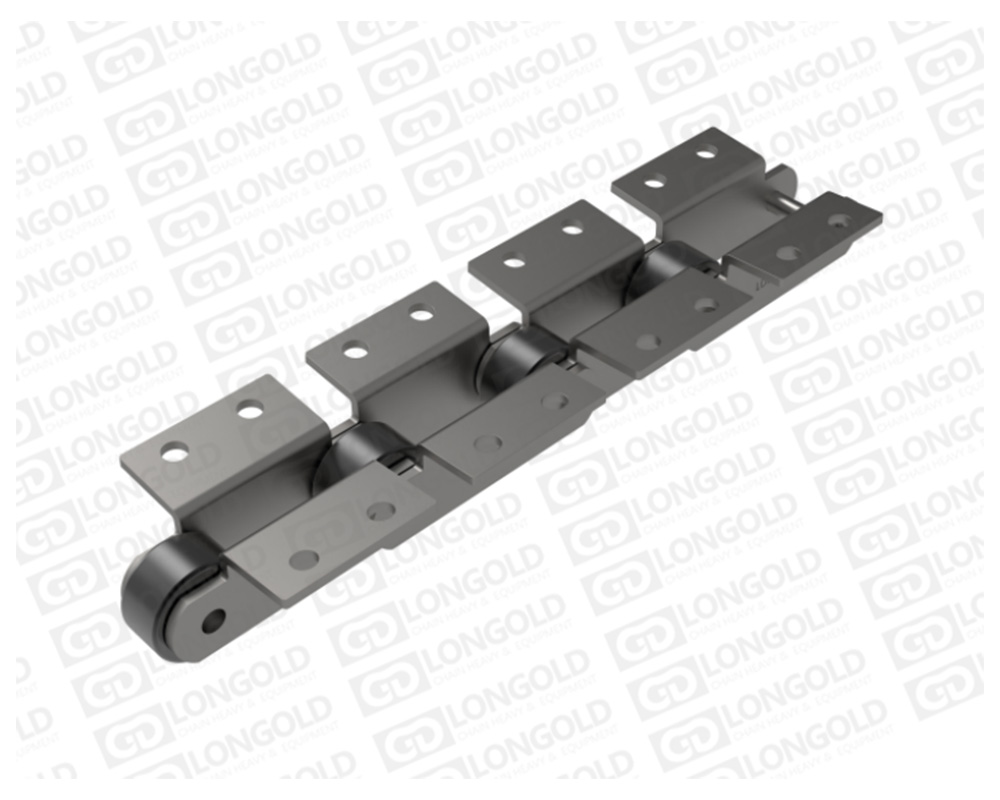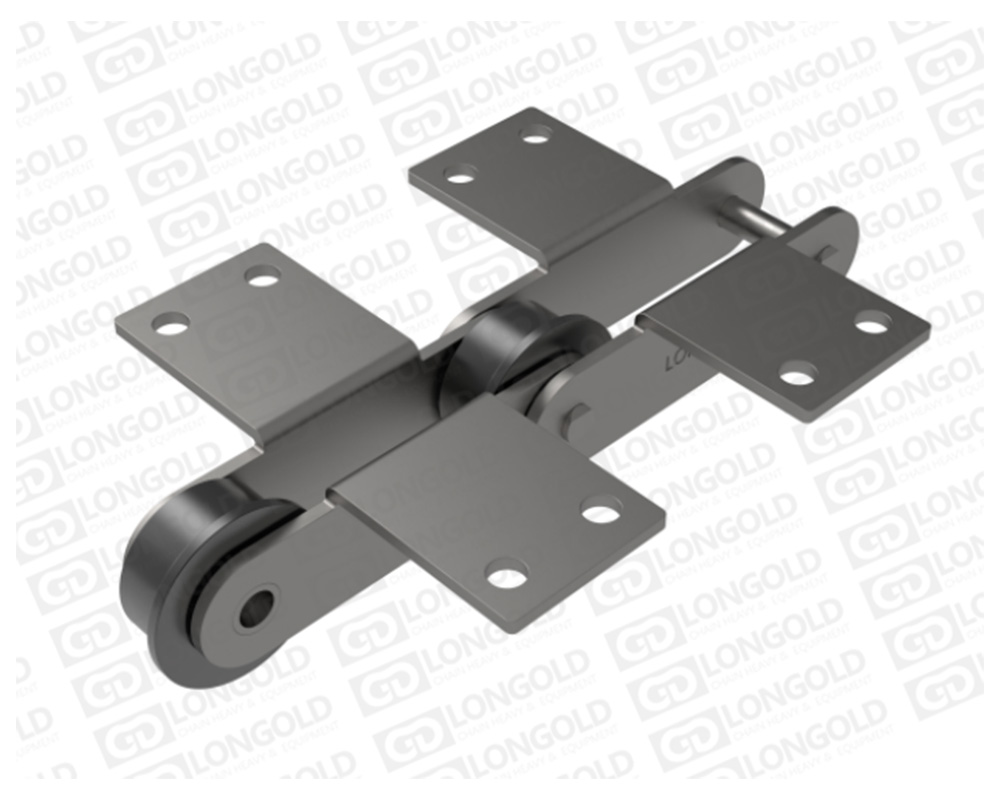 以M系列標(biāo)準(zhǔn)輸送鏈為本體鏈條,在鏈條上安裝有各種附件形式,以滿足不同的使用要求。