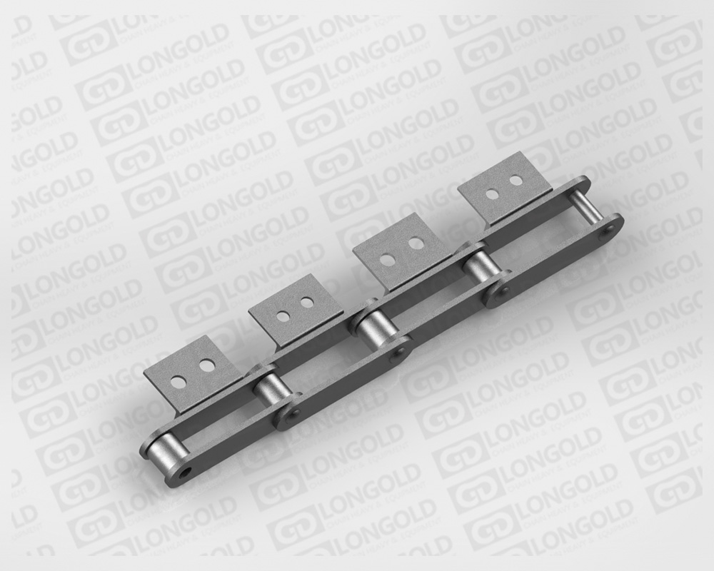 在大型輸送鏈條LDC36250~LDC440600的單側(cè)鏈板焊接附件的折彎板附件的鏈條。附件是為了將夾具安裝在鏈條上的零部件,可根據(jù)客戶要求設(shè)定安裝間隔。附件上帶有2個(gè)或3個(gè)孔,附件表示為:YA2、YA3。