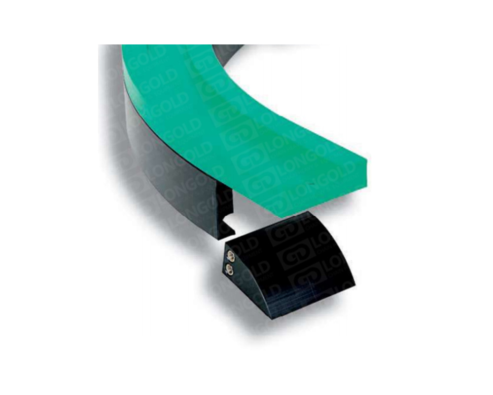 磁性轉(zhuǎn)彎軌道結(jié)合了金屬和塑料鏈板兩個系統(tǒng),即金屬頂板鏈和塑料頂板鏈能安裝在相同的磁性轉(zhuǎn)彎軌道上。將兩塊磁鐵嵌入軌道底部,并采用一塊金屬板進行連接,可以吸住鏈條使其穩(wěn)定運行,鏈板通過軌道時無蠕行現(xiàn)象以及鏈板與軌道完美貼合無側(cè)翻的效果