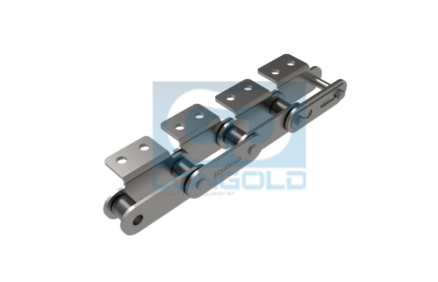帶特殊孔徑附件鏈條,本體鏈條為A系列小型輸送鏈或雙倍節(jié)距輸送鏈條,附件類型為為:A、K,附件板上孔徑為非標(biāo)特制。
