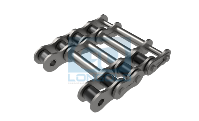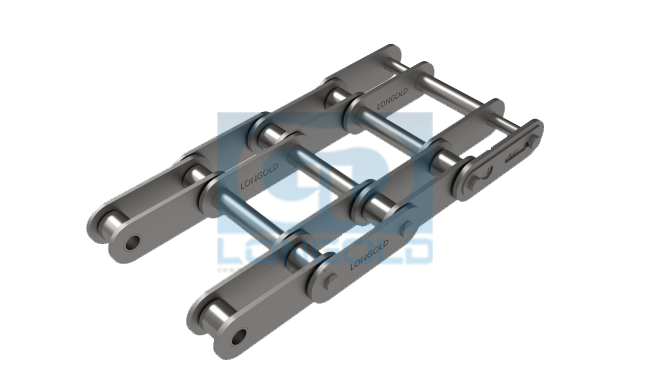 增加A系列滾子鏈條的銷軸的長(zhǎng)度,將兩條鏈條并排設(shè)置。適用于在銷的上面放置物品進(jìn)行輸送,通常在其上加裝鏈網(wǎng)使用。