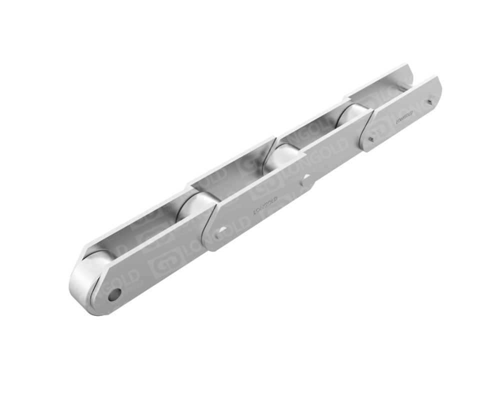 以輸送鏈為基本,安裝加寬的鏈板和摩擦阻力較小的大滾子,可以直接在鏈板上裝載重物的鏈條。采用相當(dāng)于SUS304不銹鋼材質(zhì)具有較高耐腐蝕性。