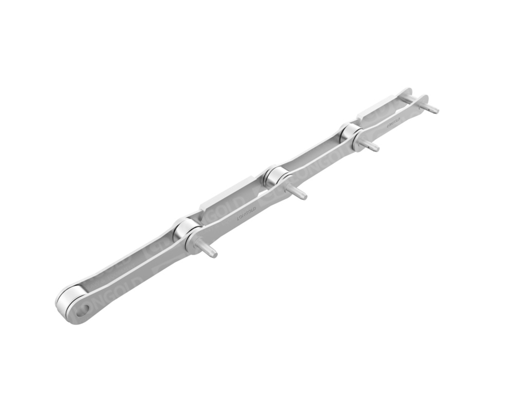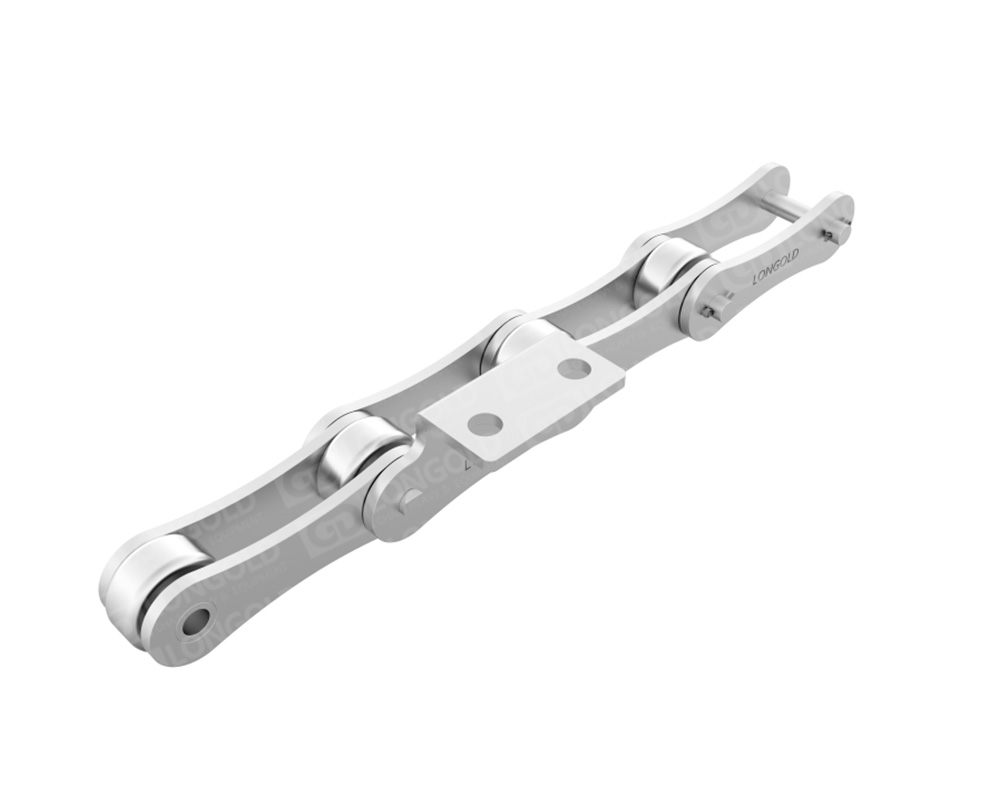 冰淇淋生產(chǎn)線用不銹鋼輸送鏈,生產(chǎn)冰淇淋、雪糕裝置的驅(qū)動(dòng)鏈條,鏈條整體采用SUS304不銹鋼材質(zhì),在冰淇淋、雪糕生產(chǎn)環(huán)境中,能夠有效抵御水汽、糖分以及各種清潔消毒劑的侵蝕