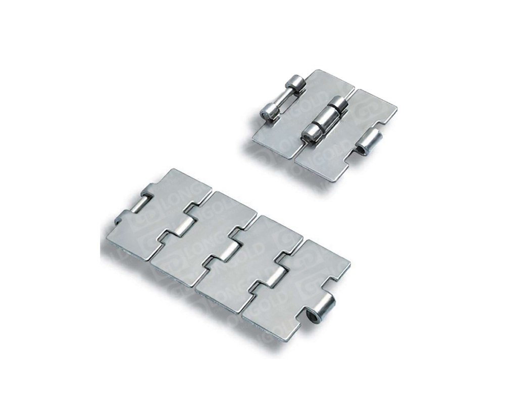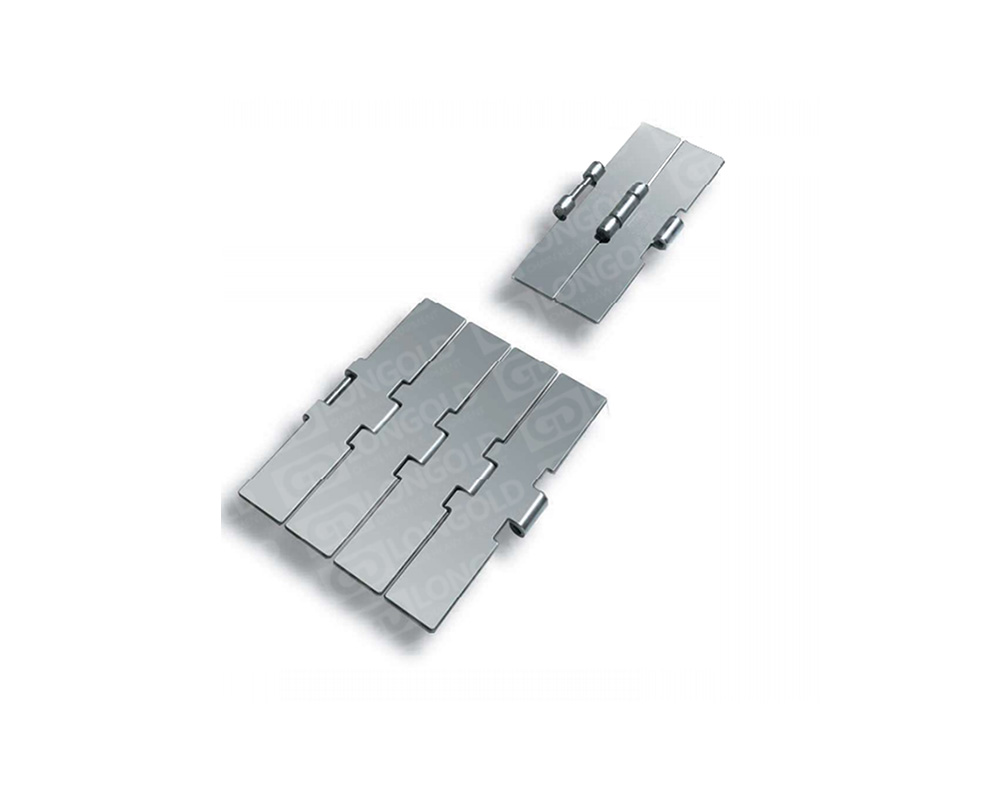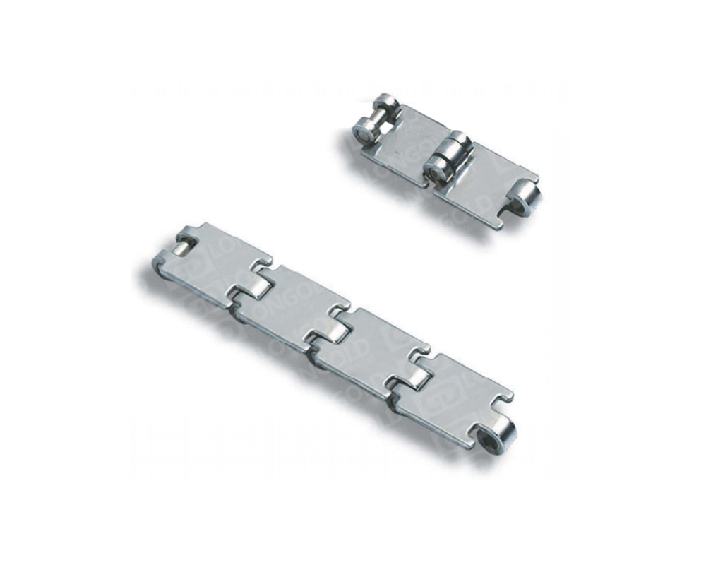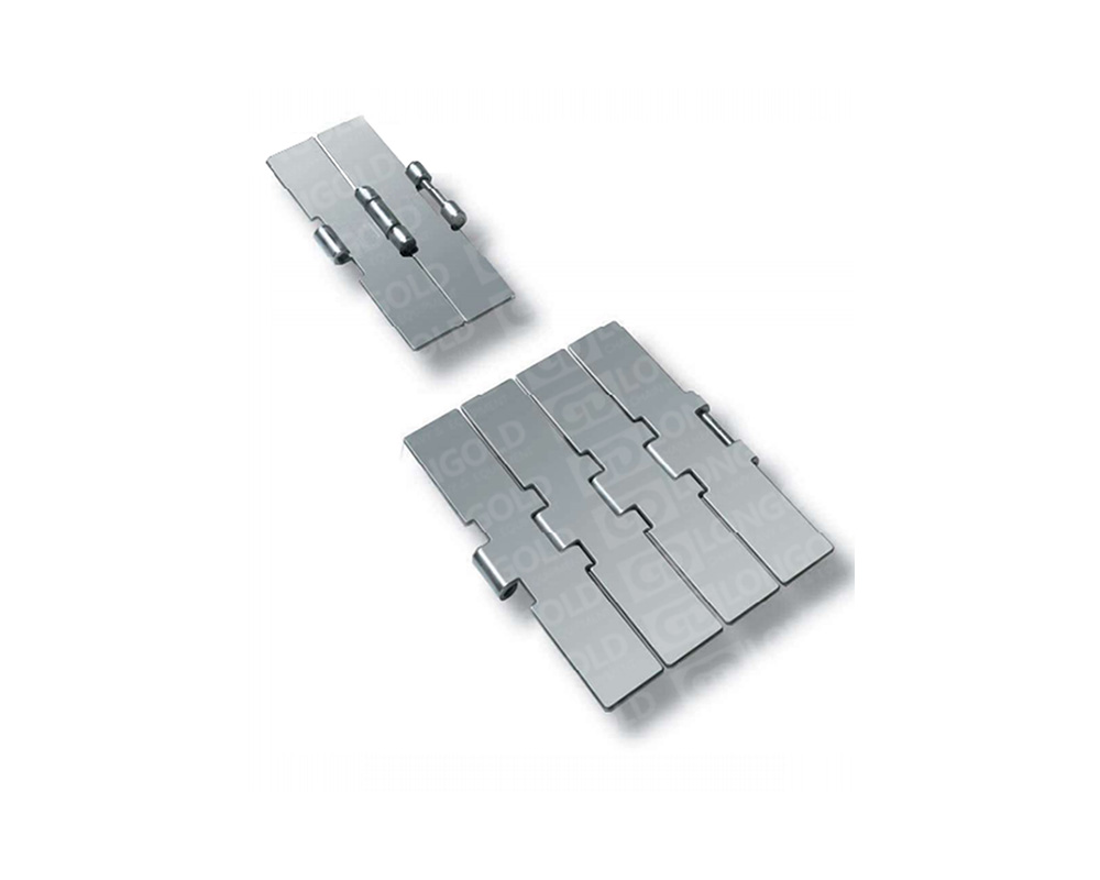 頂板鏈的鏈板通常比較寬大且厚實,其形狀多為平板狀。M815系列直行鏈回旋半徑大小減少(75毫米)。鏈片間距為2.8毫米