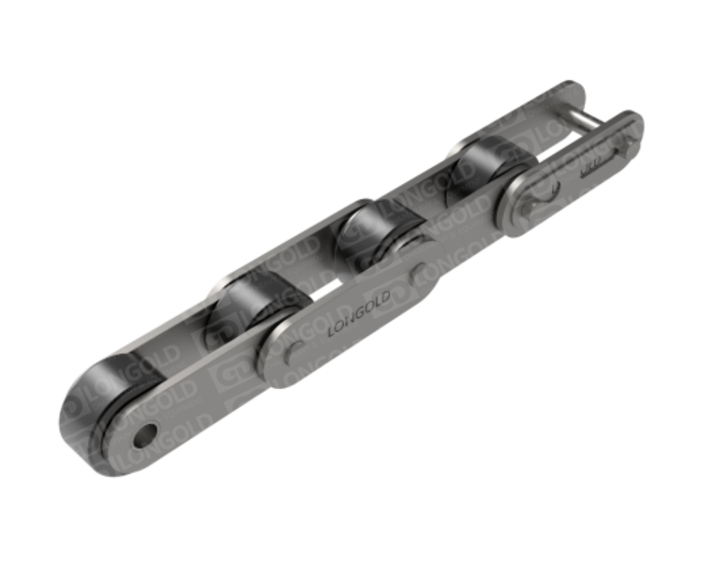 與短節(jié)距A系列滾?鏈條相?,鏈條節(jié)距增加1倍(稱為雙倍節(jié)距),鏈板形狀為直板形,鏈條的單側(cè)帶有彎板附件,且附件上有一個(gè)螺孔的形式。依照J(rèn)IS,ISO和ASME標(biāo)準(zhǔn)。