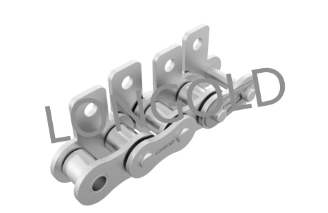 通過各種材料的組合,適合于水中、酸性及堿性等腐蝕性環(huán)境中或低溫、高溫的特殊環(huán)境里使用,且鏈條的單側鏈板延伸作為鏈條附板,且附板上帶有一個孔的A系列小型輸送鏈。材質使用相當于SUS304規(guī)格的不銹鋼材料。