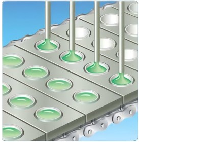 果凍填充生產(chǎn)線采用間歇輸送鏈條。