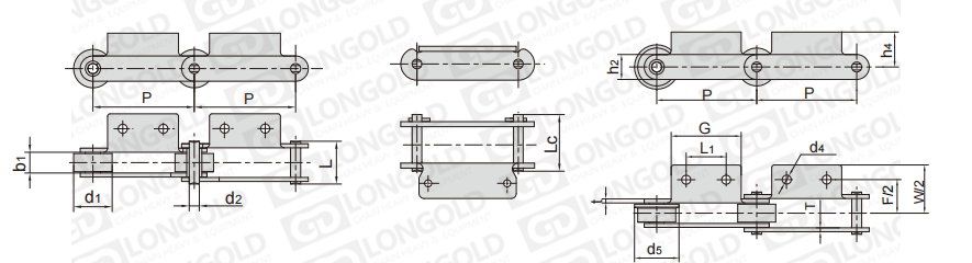 鏈條節(jié)距為非標(biāo)規(guī)格,需要安裝特定的附件,以用于物料的輸送。