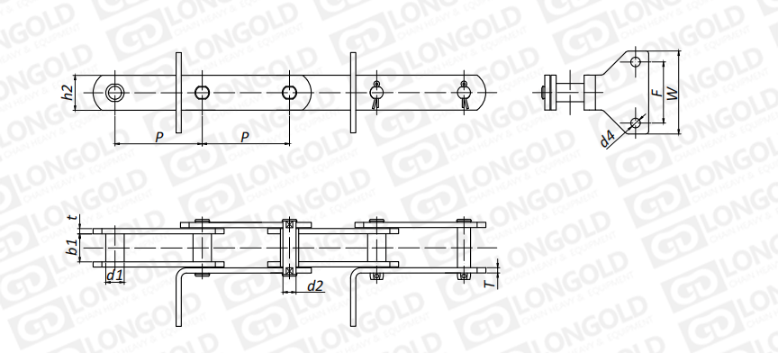 附件是為了將夾具安裝在鏈條上的零部件??筛鶕?jù)客戶要求設(shè)定安裝間隔。