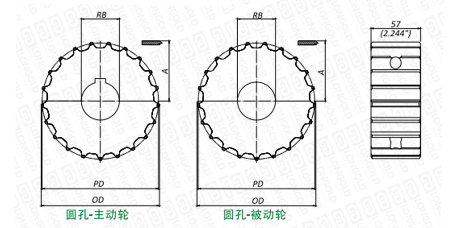 上圖為9157系列鏈輪主動(dòng)輪以及被動(dòng)輪的結(jié)構(gòu)圖。