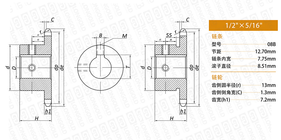 上圖為08B-1 成品孔鏈輪的結(jié)構(gòu)圖。