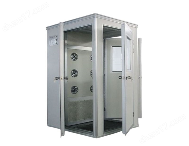 雙人雙吹風淋室經(jīng)高效送風口過濾后的清潔氣旋由可轉(zhuǎn)動噴頭從每個方位噴涌至人手上,進而合理而快速地消除浮塵物體。消除后的浮塵物體再經(jīng)過初、高效送風口過濾后再次循環(huán)系統(tǒng)到風淋室地區(qū)內(nèi)。以便超過吹淋的實際效果,風淋室設(shè)計方案的噴頭通風口風力能超過25m/s左右,吹進人手上的風力不少于18m/s,原廠的原始風淋室時間設(shè)定為15秒風淋室出示了模塊化設(shè)計的拼裝方法,能夠按具體必須組裝成各種各樣長短的風淋室規(guī)格。