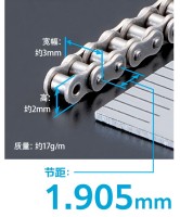 1.905mm的鏈節(jié)距是目前世界上最小的微型滾子鏈。 高度、整體寬幅和質(zhì)量完全不同于以往產(chǎn)品,可在超乎想象的超小空間實現(xiàn)動力傳遞。