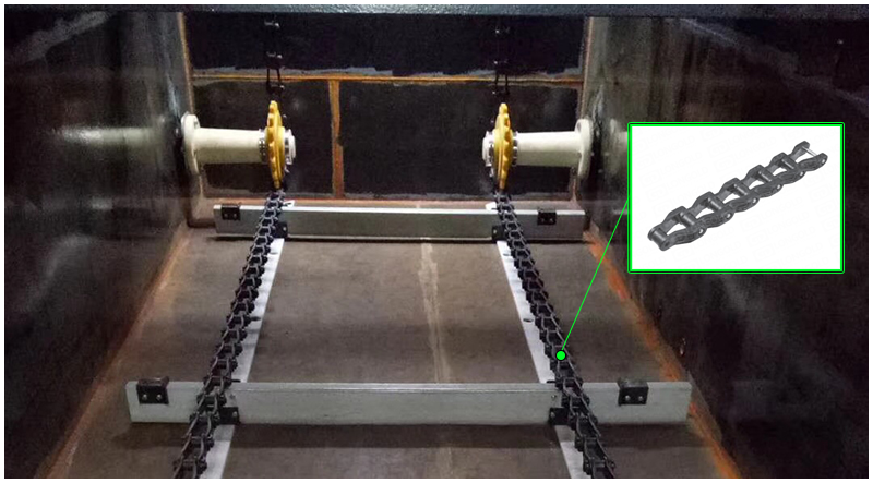 水處理用輸送鏈和污水處理用輸送鏈主要是用于污水流淌較為緩慢的區(qū)域,通過鏈條的運(yùn)轉(zhuǎn)帶動(dòng)污水的流動(dòng),同時(shí)將沉積下來的污泥從底部帶動(dòng)到污泥清除區(qū)域,保證污水處理通道不會(huì)因污泥沉積而堵塞。