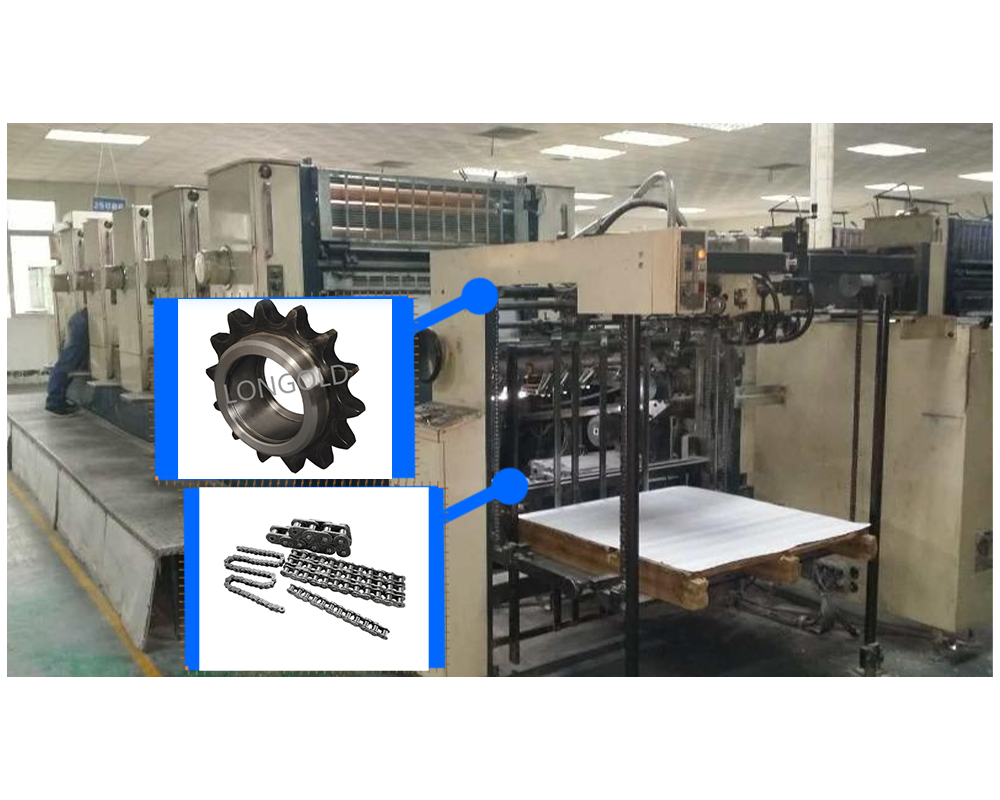 印刷設備通常需要較大的動力來驅(qū)動各個部件的運動,隆德的傳動鏈和鏈輪可以將動力從電機等動力源傳遞到印刷設備的各個部位,確保設備的正常運行。圖中為滾子鏈和鏈輪組合來為印刷設備傳動動力。 |