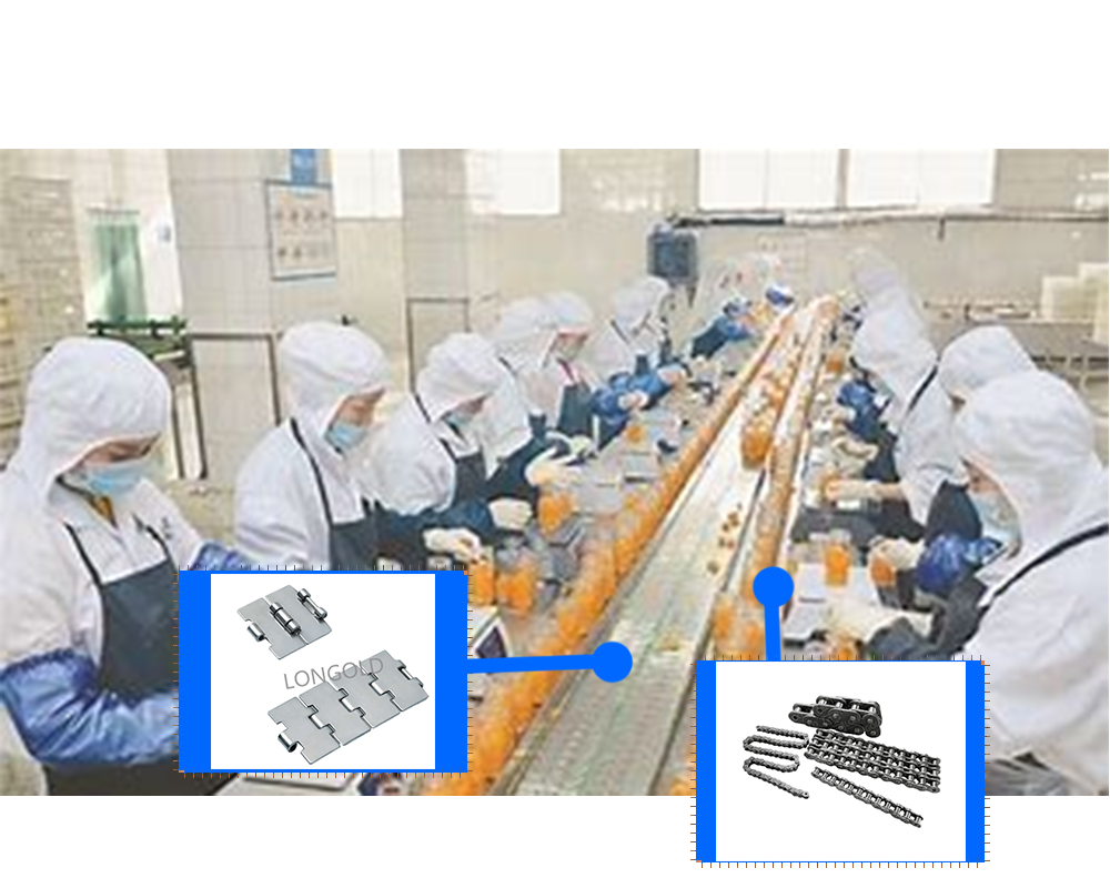 農(nóng)產(chǎn)品加工有著嚴格的衛(wèi)生食品標(biāo)準(zhǔn),在加工時,負責(zé)運輸?shù)穆〉马敯彐湕l滿足衛(wèi)生食品要求,頂板鏈的頂板結(jié)構(gòu)可以提供較大的支撐面積,因此能夠承載較重的物料。在農(nóng)產(chǎn)品加工中,一些大型的水果、蔬菜或谷物等物料需要通過頂板鏈進行輸送,頂板鏈的承載能力可以滿足這些物料的輸送需求。傳動鏈負責(zé)給頂板鏈提供動力。