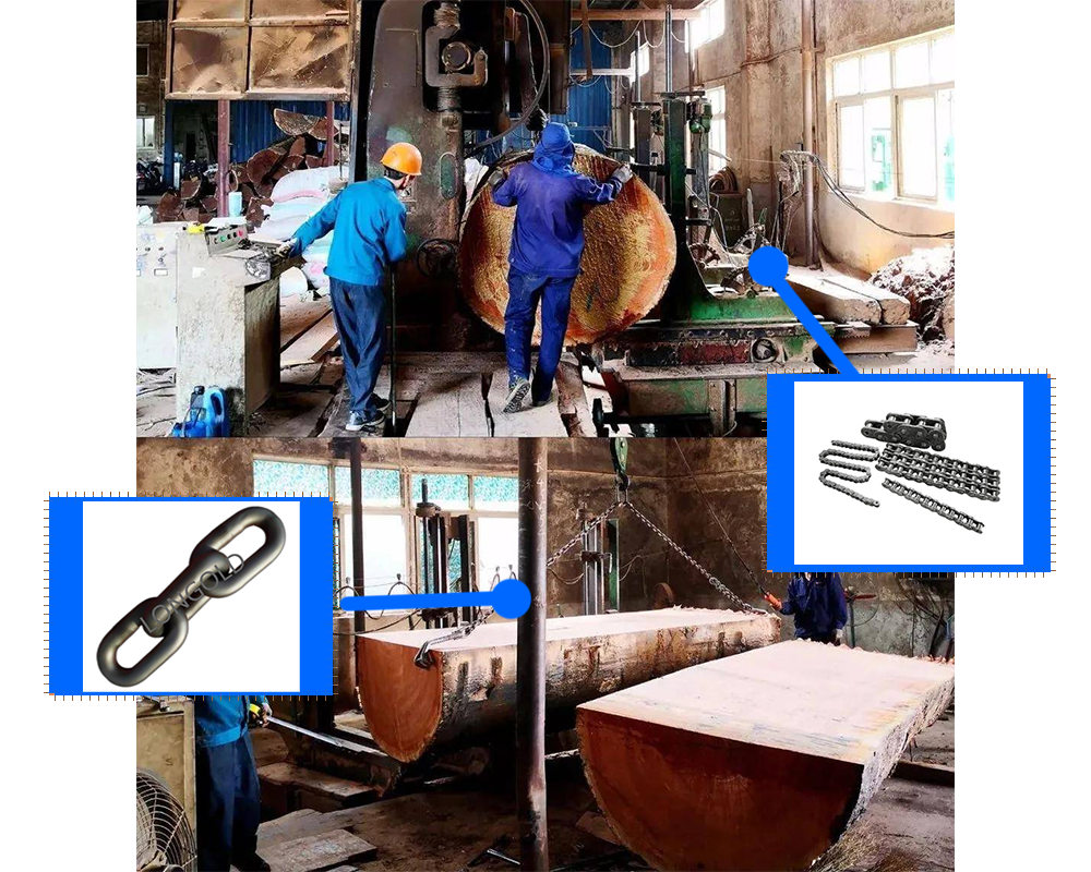木材加工是最后的流程,對(duì)木材加工成客戶需求的樣子,其中大型器械的動(dòng)力提供、木材的吊起都有傳動(dòng)鏈的參與,而隆德傳動(dòng)鏈能夠henfh影響著后面一些列加工流程的進(jìn)度,隆德的吊裝圓環(huán)鏈能夠穩(wěn)定將大型木材diaoq